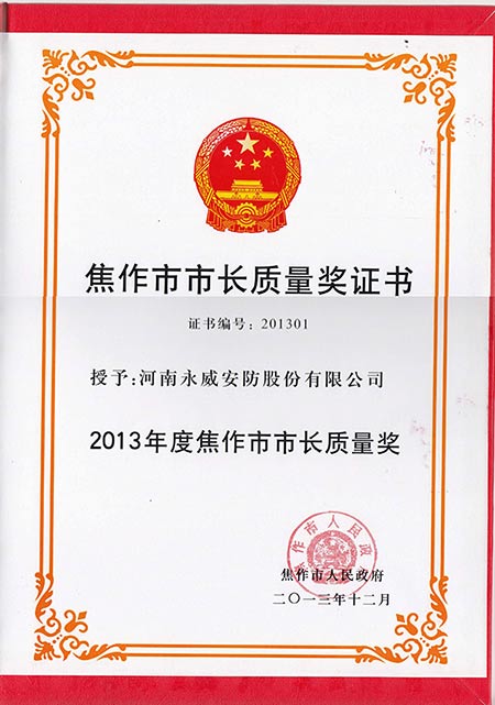 焦作市市長質(zhì)量獎(jiǎng)-證書